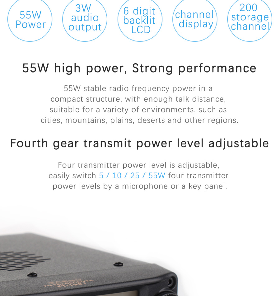 | Output Power | 55W/25W/10W/5W |